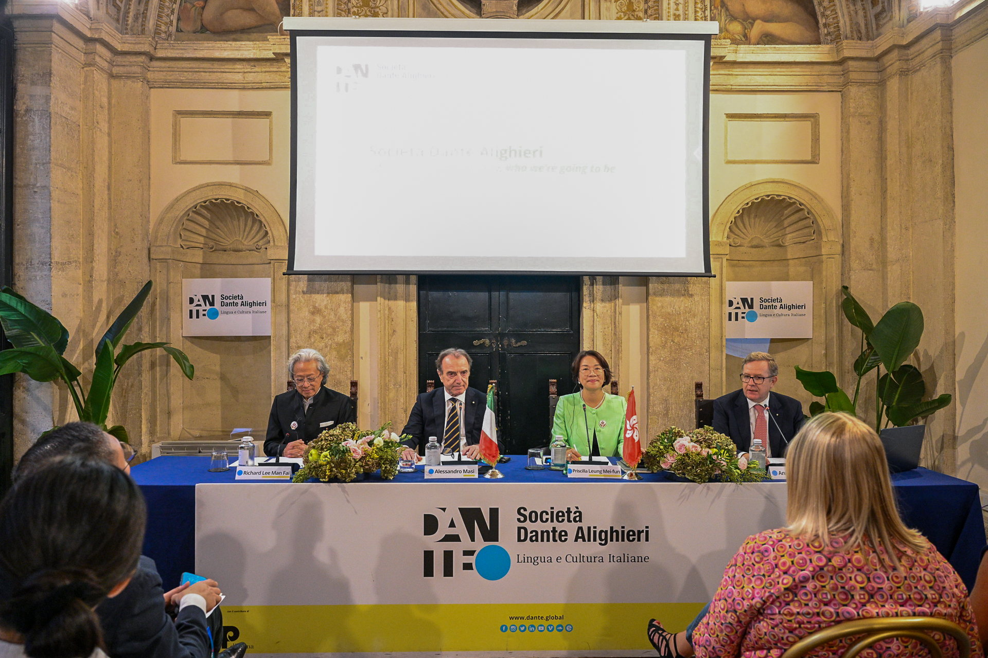 Il Segretario generale Alessandro Masi ha sottolineato come “L’amore per la bellezza e per la cultura unisce i nostri paesi, che possono fare ancora tanto con progetti di rilancio nei termini di bellezza, di gusto e di eleganza, che non sono termini astratti ma applicabili allo sviluppo della produzione industriale, della ricerca e alla tecnologica”. La Presidente e fondatrice della HKAEF Priscilla Leung Mei-fun ha aggiunto: “L'Italia ha un rapporto speciale al cuore della Cina, che può essere rafforzato a partire dall’educazione, dall’istruzione e dalla lingua. La lingua è lo strumento migliore per creare una relazione e unire i cuori delle persone e che si impronti al sentimento di amicizia”. Il dialogo culturale con la regione di Hong Kong è favorito dal costante impegno del Comitato della Dante di Hong Kong, presente in città da oltre 90 anni.
