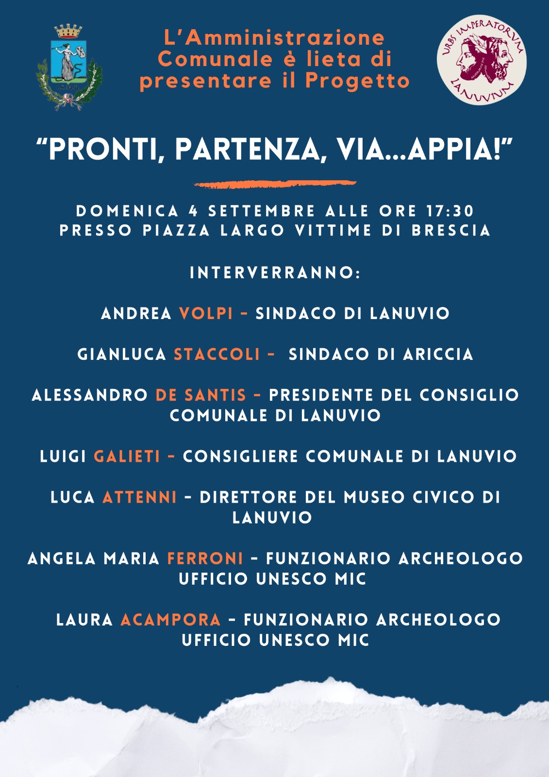 “L’evento, al quale parteciperanno oltre al presidente del consiglio comunale Alessandro De Santis e all’ex sindaco Luigi Galieti, anche il sindaco di Ariccia Gianluca Staccoli, il direttore del museo civico di Lanuvio Luca Attenni e i funzionari dell’ufficio archeologico UNESCO del Ministero della Cultura Angela Maria Ferroni e Laura Acampora, è un importante momento per per rendere partecipe, informare e coinvolgere la cittadinanza nei progetti utili allo sviluppo del nostro territorio”.