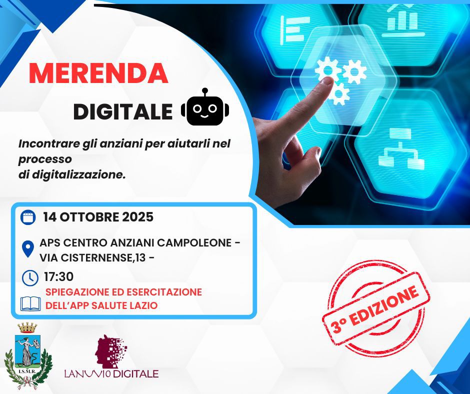 Martedì 14 ottobre 2025 alle ore 17:30, presso l’APS Centro Anziani di Campoleone (via Cisternense, 13), torna l’iniziativa Merenda Digitale, giunta alla sua terza edizione.
