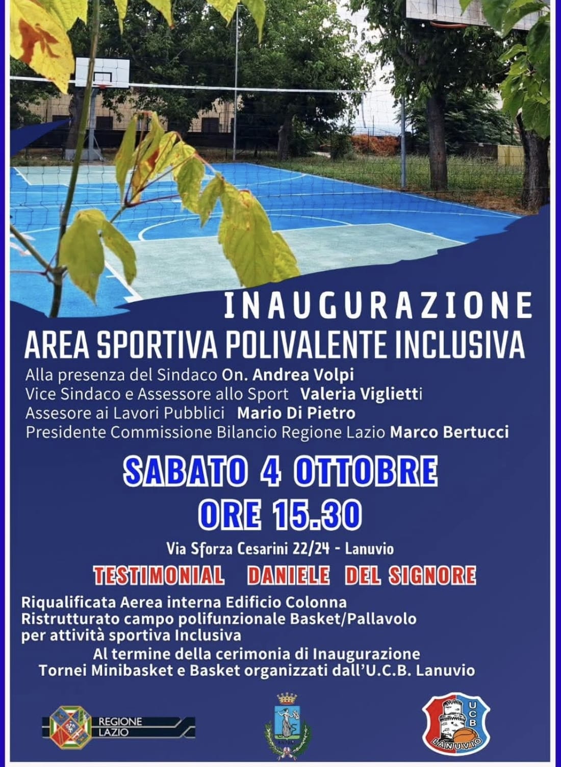 Al termine della cerimonia inaugurale sono previsti tornei di minibasket e basket, organizzati dall’U.C.B. Lanuvio, che renderanno la giornata una vera festa dello sport condiviso.