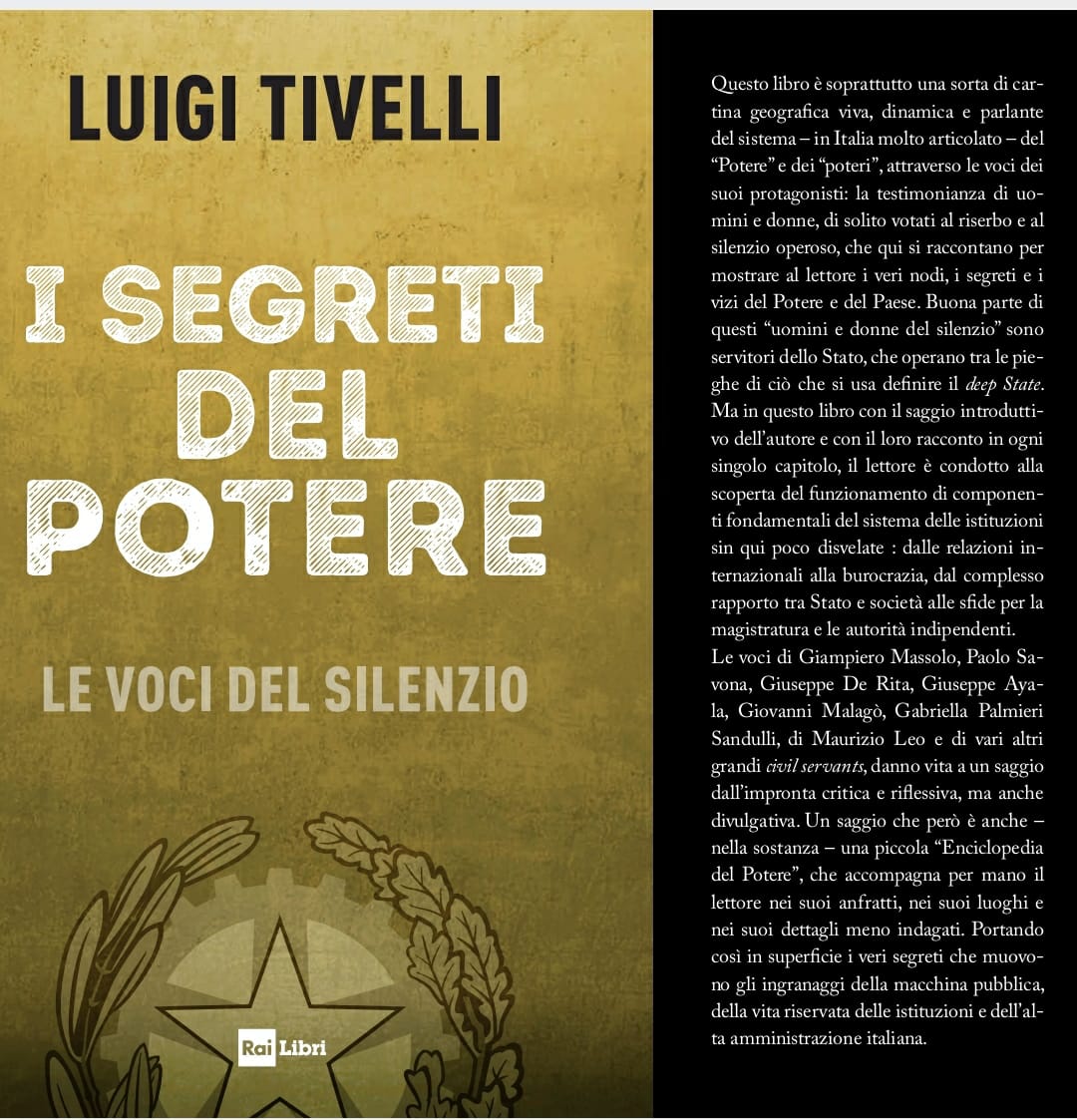 Esce in questi giorni in libreria il libro di Luigi Tivelli edito da Rai Libri "I segreti del Potere. Le voci del Silenzio". Un "libro miniera" in cui il lettore può apprendere tanti aspetti sin qui poco conosciuti e innovativi del funzionamento delle istituzioni e della macchina pubblica.