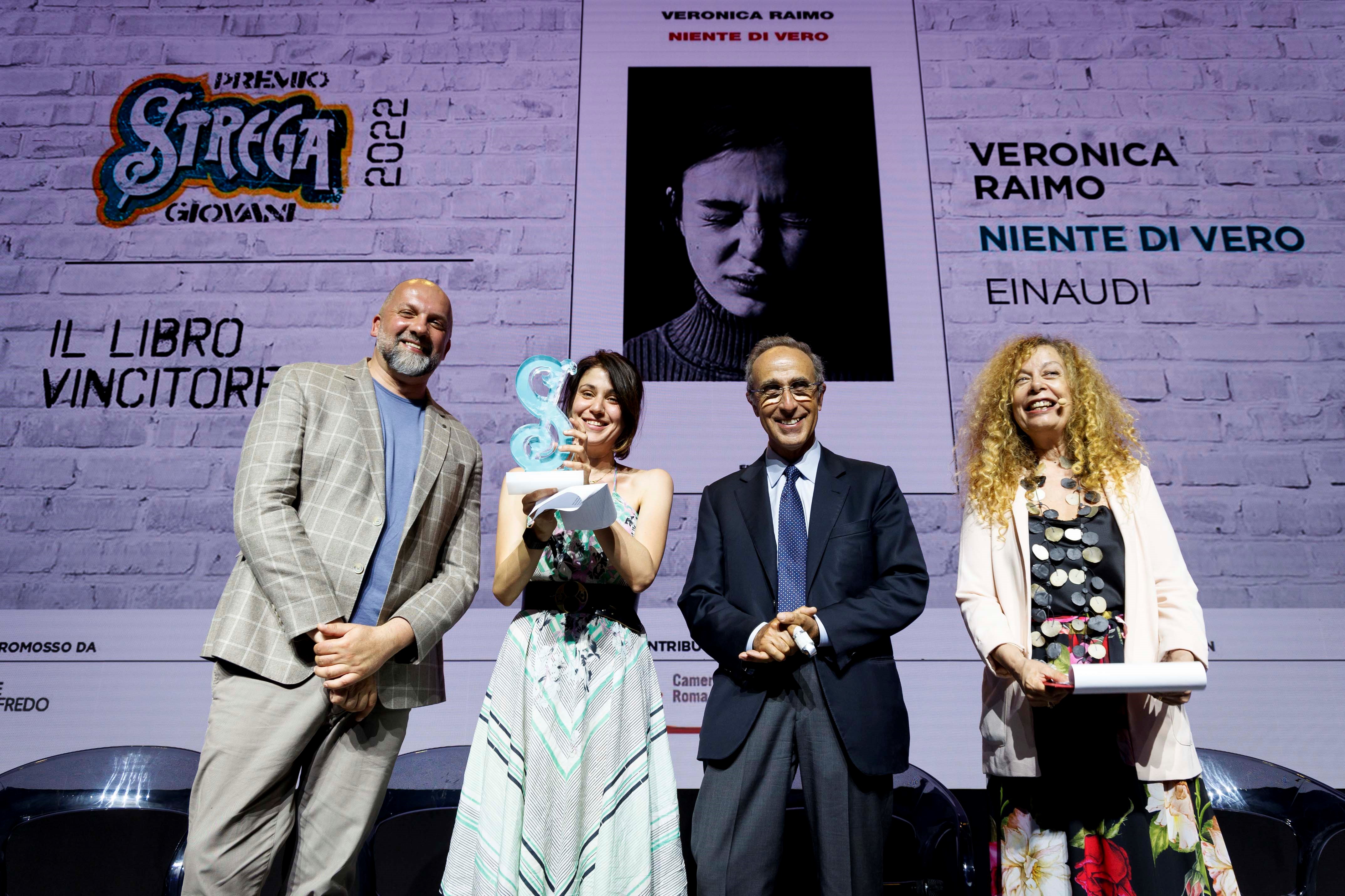 Veronica Raimo con il romanzo Niente di vero (Einaudi) è la vincitrice della nona edizione del Premio Strega Giovani, promosso dalla Fondazione Maria e Goffredo Bellonci e da Strega Alberti con il contributo della Camera di Commercio di Roma e in collaborazione con BPER Banca. La vincitrice è stata annunciata da Stefano Petrocchi, direttore. della Fondazione, durante la cerimonia che si è svolta al Pala Studio di Cinecittà. È stato Giuseppe D’Avino, presidente di Strega Alberti Benevento, a consegnare il premio.