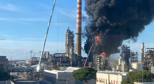 In fiamme un impianto della raffineria. Secondo alcuni testimoni ci sarebbe un ferito. La zona è stata evacuata.