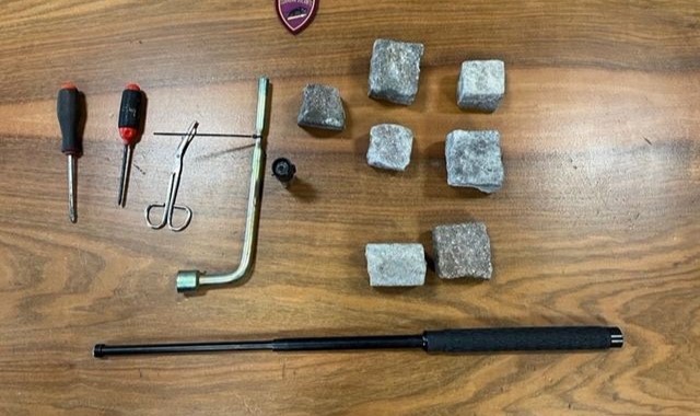 Dopo averlo identificato e portato in Questura, a seguito di perquisizione è stato trovato in possesso di un bastone animato in metallo, tre cacciaviti, alcuni sanpietrini e una bomboletta spray al peperoncino.