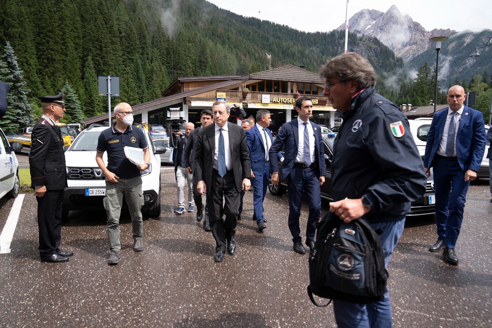 Oltre a Draghi, a Canazei sono arrivati anche il capo della Protezione Civile, Fabrizio Curcio, il Governatore del Veneto Luca Zaia e i Presidenti delle Province Autonome di Trento e Bolzano, Maurizio Fugatti e Arno Kompatscher.