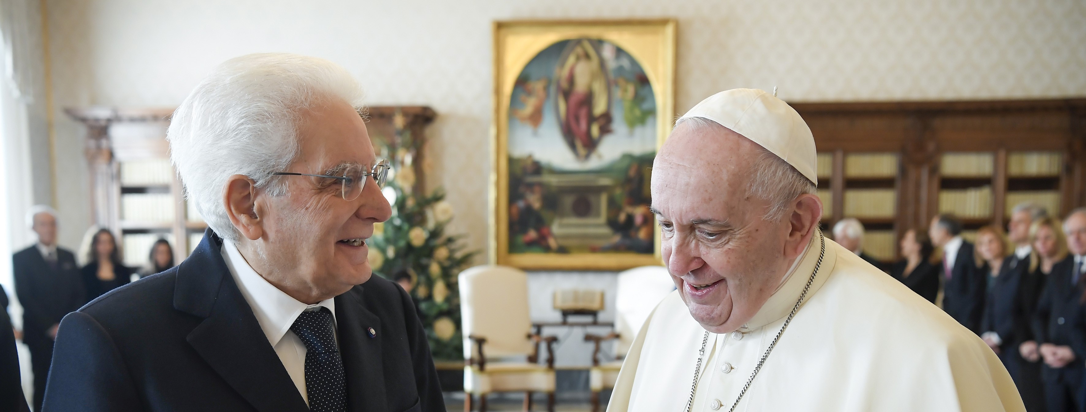 Mentre molteplici focolai di guerra, anche in aree prossime all’Italia, continuano a provocare lutti e a lacerare il tessuto sociale di intere comunità, le Sue parole e i Suoi richiami costituiscono, per credenti e non credenti, un punto fermo cui guardare nei momenti di più profonda angoscia o di intima inquietudine.
