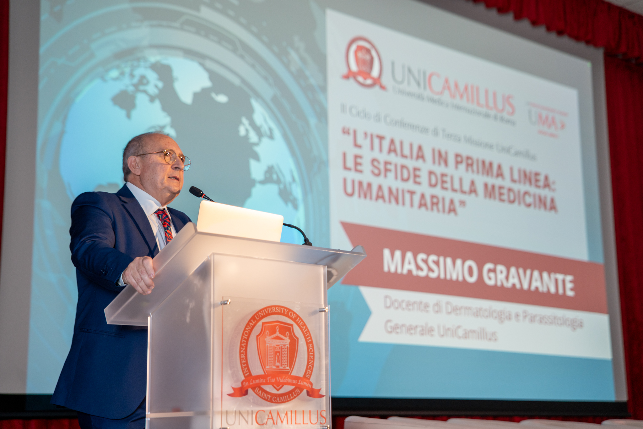 Segue l’intervento del Professor Massimo Gravante, Docente di Dermatologia e Parassitologia Generale presso UniCamillus. Il video delle sue missioni in Benin ha commosso la platea, mentre il Professore ha raccontato di come si affrontassero le condizioni difficili di lebbra, albinismo, malaria di bambini anche molto piccoli. «In ogni missione umanitaria, però, è fondamentale il rispetto della dignità delle popolazioni locali, sia in termini di credo religioso che di orientamento culturale».