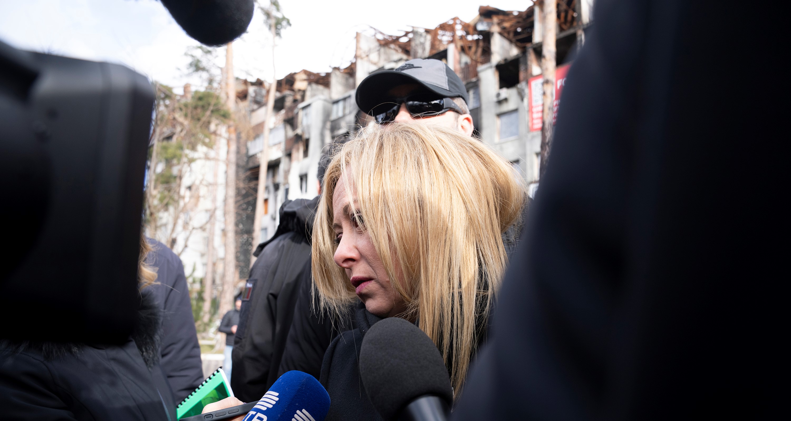 Meloni in visita a Irpin: "E' diverso parlare di numeri o vedere a caldo la vita della gente distrutta"