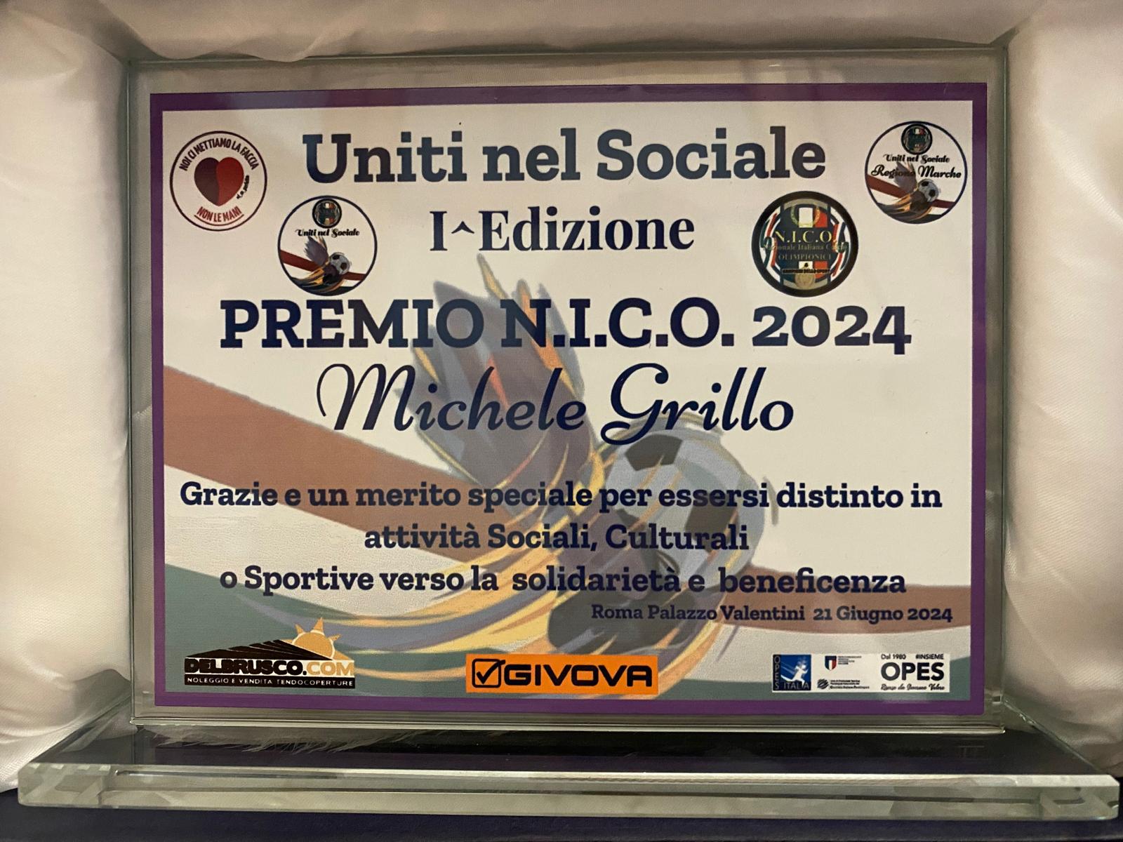 Il Premio Nico è stato istituito per riconoscere coloro che, nel silenzio e senza clamore, contribuiscono significativamente al miglioramento della società. Michele Grillo è stato premiato per il suo instancabile impegno nel contrasto al bullismo e nel sostegno ai giovani in difficoltà. Il suo lavoro all'interno dell'Osservatorio Nazionale Bullismo e Disagio Giovanile è stato fondamentale per promuovere iniziative di prevenzione e supporto, dimostrando una dedizione autentica e professionale.