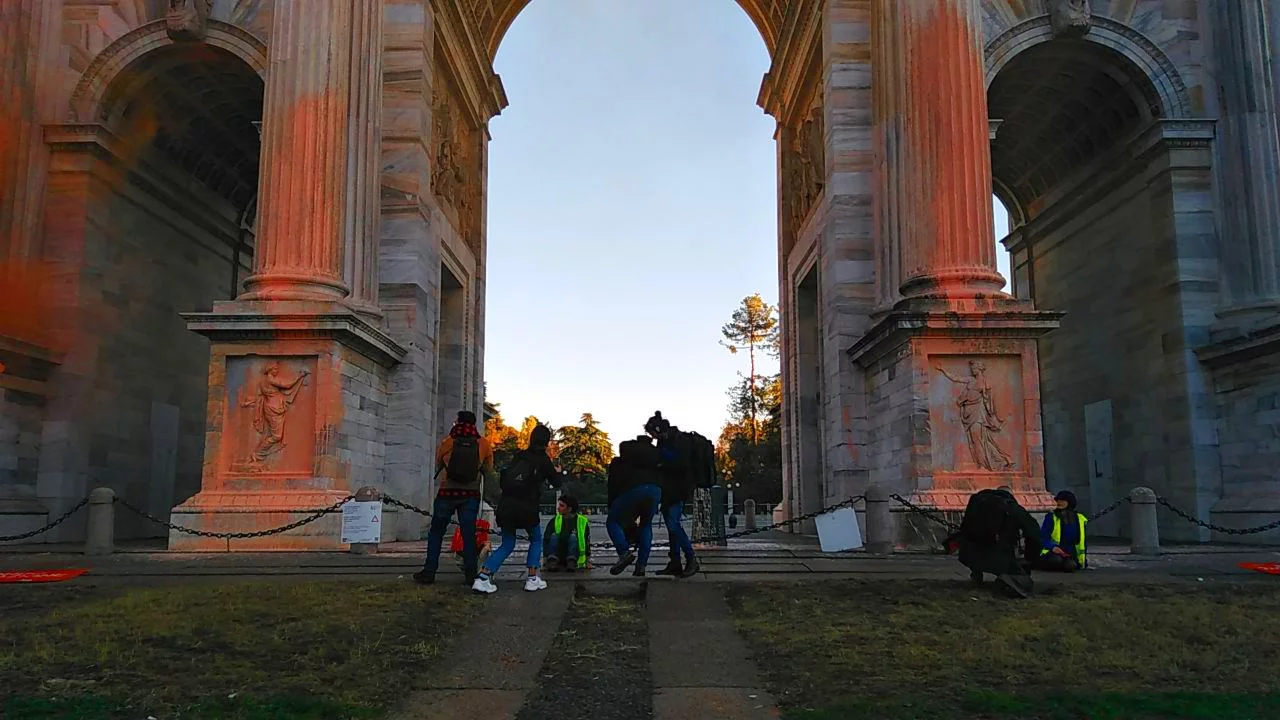 Nuovo blitz di Ultima Generazione: questo pomeriggio, dieci attivisti hanno sporcato l'Arco della Pace di Milano con vernice arancione. I manifestanti hanno usato un estintore e, nel contempo, srotolato il manifesto con su scritto "Fondo Riparazione".