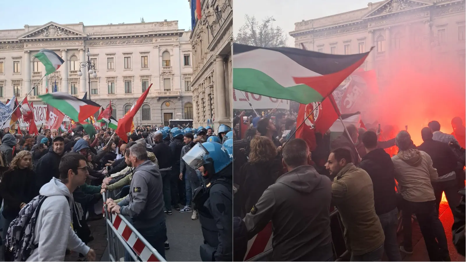 Alla notizia del voto, anche fuori da Palazzo Marino ci sono stati dei tafferugli: i manifestanti hanno cominciato a spingere contro le transenne di protezione, gridando "vergogna, vergogna", venendo respinti con i manganelli dai poliziotti in tenuta antisommossa. Poi, gran parte dei manifestanti ha iniziato a muoversi in corteo da Piazza della Scala, urlando "Palestina libera" e cori contro le forze dell'ordine. Altri, invece, sono rimasti fuori da Palazzo Marino.