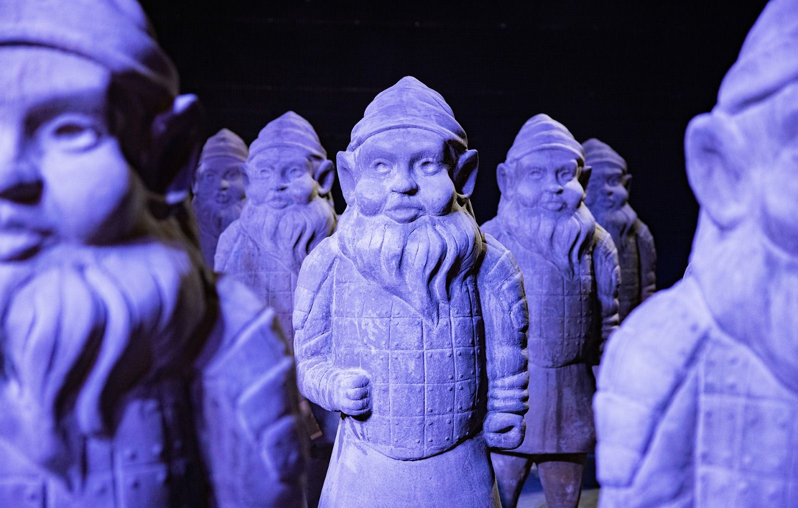 Il progetto, presentato lo scorso anno alla Fondazione Stelline, stimola il dibattito sulle cause reali della possibile estinzione della razza umana con l’ironia tipica di Papeschi. L’installazione “Zwergen Dämmerung“, letteralmente “il crepuscolo dei nani”, è un fermo-immagine in cui si cristallizza questo momento storico, basato su due temi principali: la minaccia della guerra e l’impoverimento della cultura che l’artista ha visualizzato attraverso un esercito di 54 statue. Il fatto che il primo ritrovamento della civiltà aliena sia un esercito è emblematico e ci racconta di una civiltà in perenne conflitto.