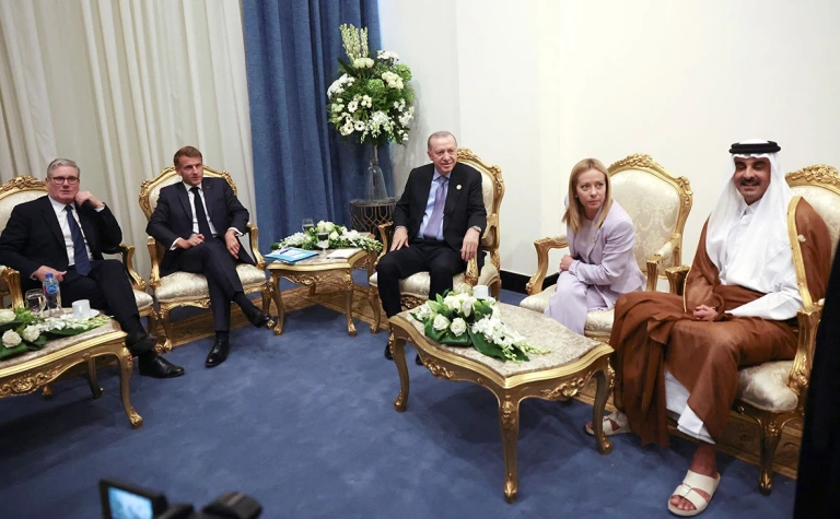 Il Primo Ministro UK Keir Starmer ha incontrato ieri 13 ottobre il Presidente francese Emmanuel Macron, l'Emiro del Qatar, lo sceicco Tamim bin Hamad Al Thani e il presidente turco Recep Tayyip Erdoğan.