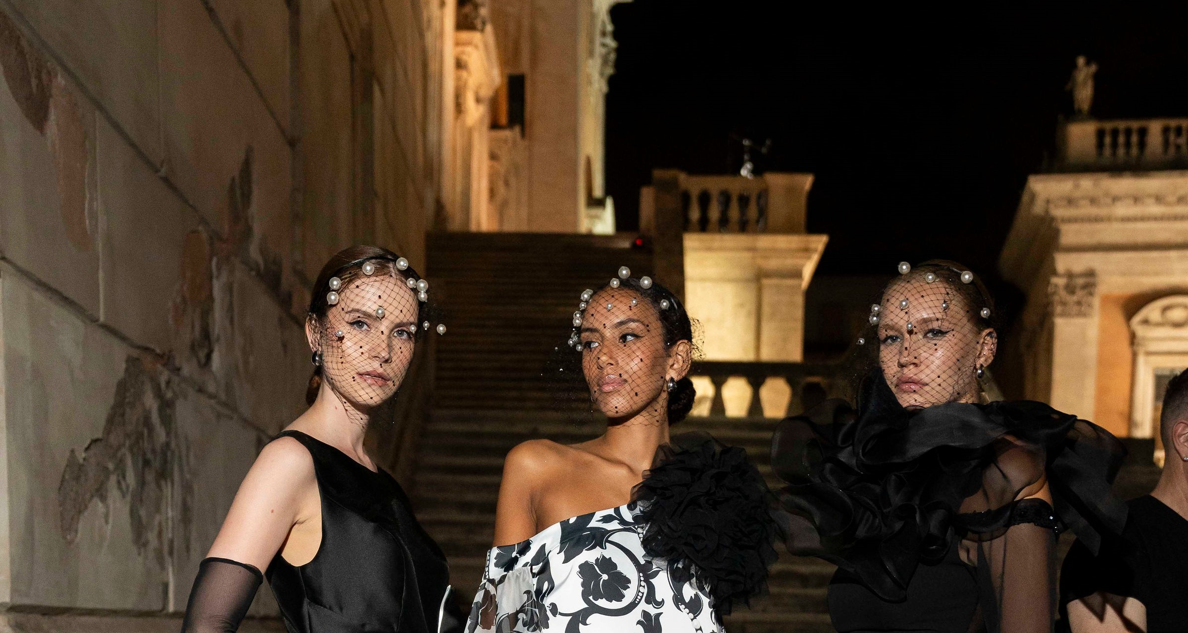 Grande il successo e molti gli applausi per Gianni Molaro, il talentuoso designer da sempre punto di riferimento indiscusso nel settore bridal, per i suoi abiti haute couture da sera. Una scenografia mozzafiato progettata dal grande Michelangelo, sotto un meraviglioso cielo stellato di una tiepida estate romana, è stata il magico scenario della sua sfilata. Il celebre stilista di haute couture, noto per i suoi incantevoli e straordinari abiti da sposa, ha incantato il pubblico con la sua ultima collezione Spring/Summer 2025 intitolata Noble Vanitè. presentando, per la prima volta dei meravigliosi abiti haute couture da sera. Ad applaudirlo nel suo ricco e importante parterre: la Principessa Maria Pia Ruspoli, il Principe Guglielmo Giovanelli, le attrici Raffaella Paleari, Giorgia Fiori, Carla Cogliandro e Fabiola Morabito, lo stilista e astrologo Massimo Bomba ed il pittore Amedeo Brogli.
