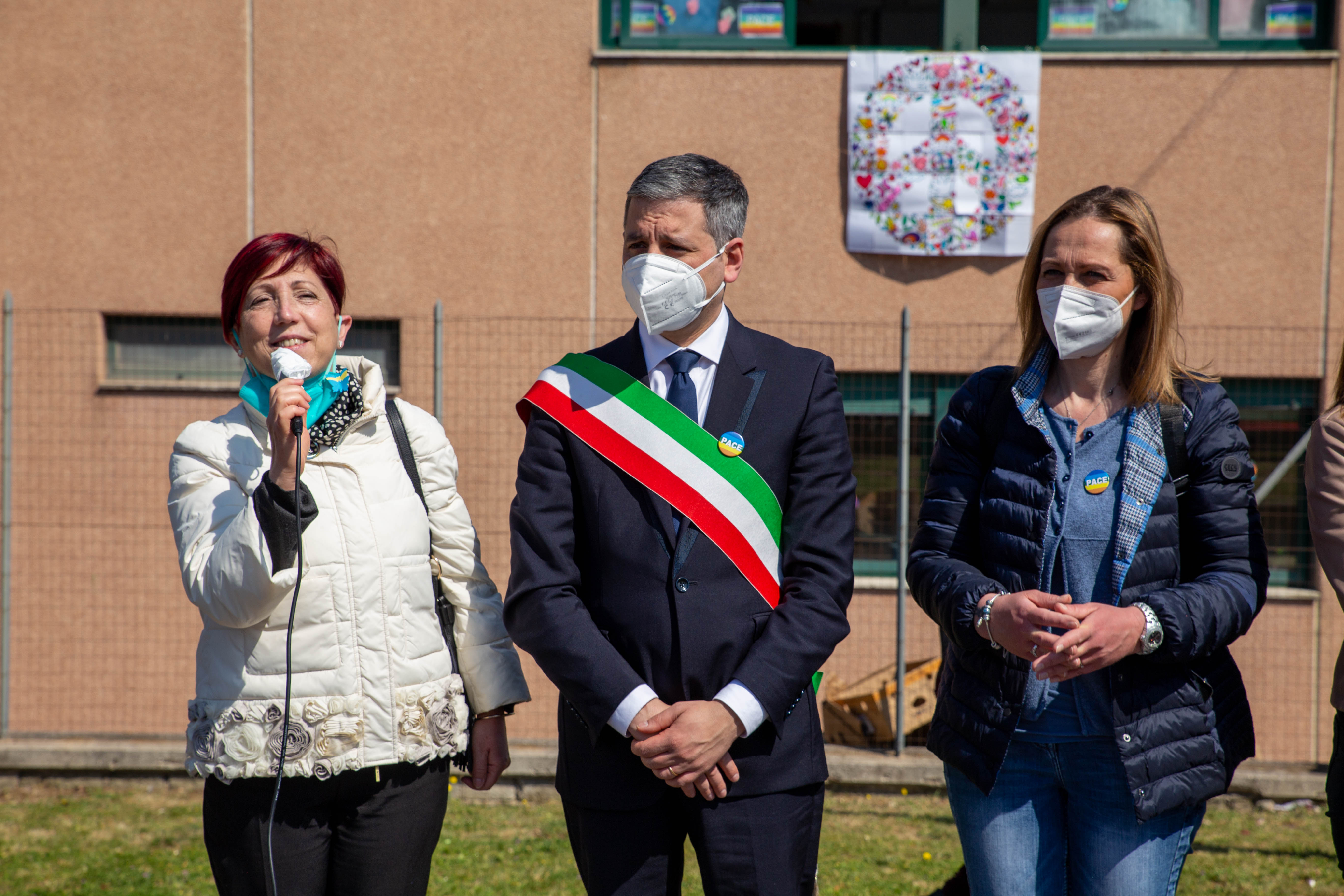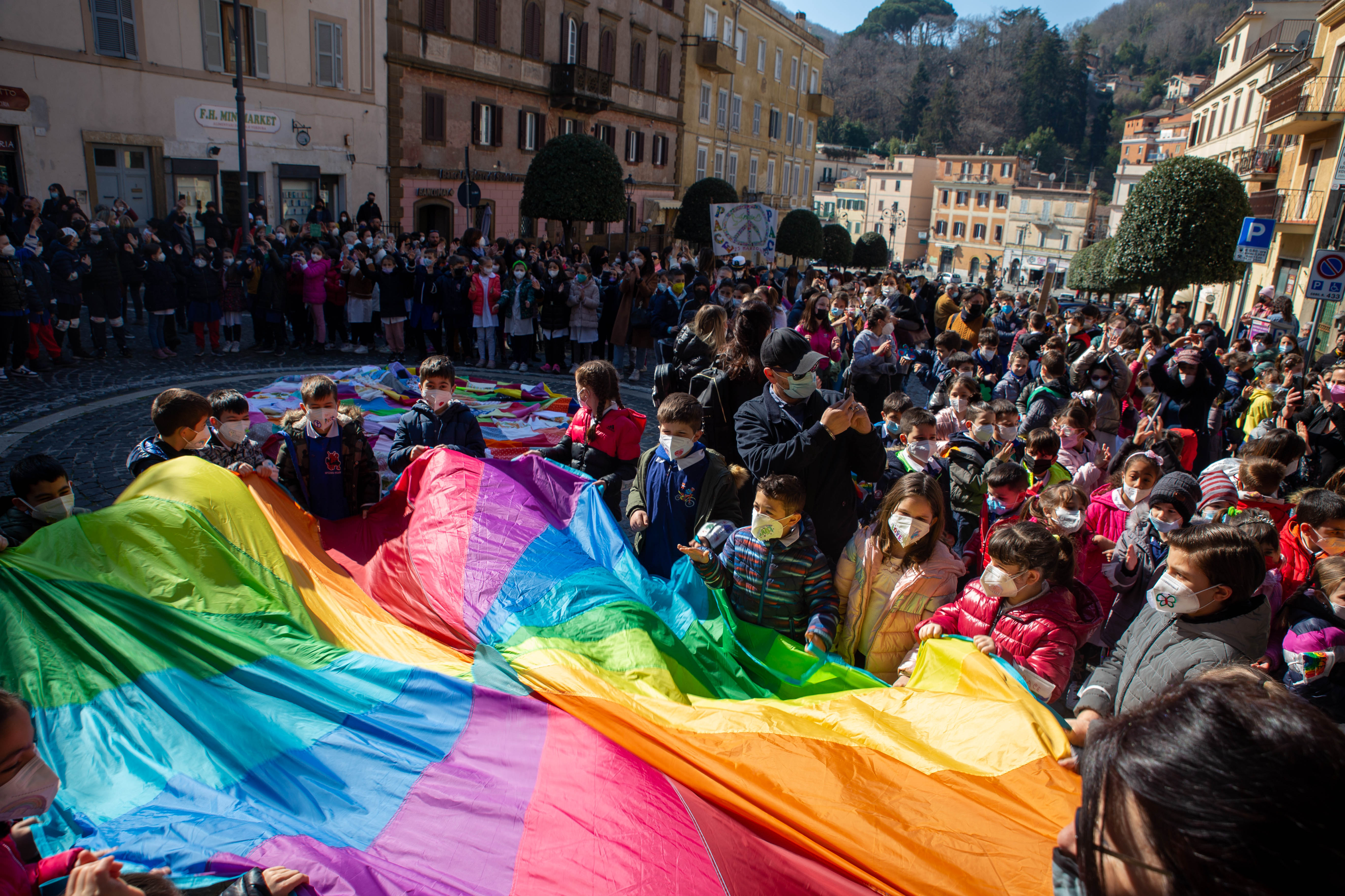 La manifestazione è iniziata alle ore 9 con le classi del centro urbano che hanno percorso la Passeggiata di Viale Busnago fino ad arrivare al Monumento ai Caduti in piazza Marco Mastrofini. Qui hanno letto brani di Quasimodo e Ungaretti, ballato e sventolato bandiere della pace. Stesso copione alle ore 11 a Laghetto, con le classi dell’Istituto Comprensivo che da piazza Lago Regillo sono arrivate al piazzale antistante la Scuola Primaria.