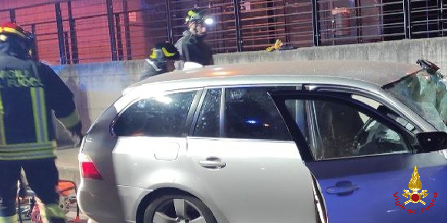 Un'autovettura, alla cui guida vi era un giovane di 23 anni, per cause ancora in corso di accertamento, dopo aver invaso la corsia opposta al proprio senso di marcia è andata a sbattere violentemente contro un muro.