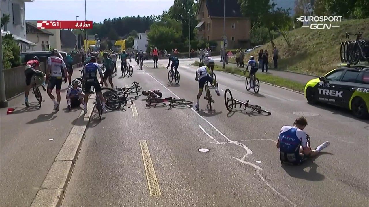 Scendendo dal Passo Albula verso l'arrivo di La Punt, a 90 km/h, è uscito male da una curva insieme al corridore americano Sheffield ed è volato tra le pietraie per 30 metri.