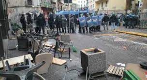 I tifosi, che non avrebbero potuto assistere alla partita perché la trasferta era stata loro vietata per ragioni di sicurezza pubblica, sono arrivati in città nella giornata di ieri, e questa mattina, in corteo, si sono diretti dal lungomare fino allo stadio, nel quartiere di Fuorigrotta, e hanno distrutto i dehors dei bar nell'area.