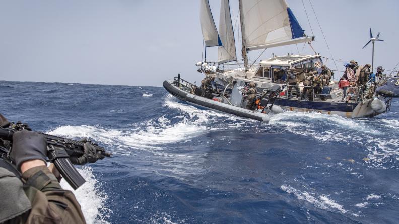Il gruppo di navi facenti parte della missione "Giovanna D'Arco" ha abbordato una grossa imbarcazione a vela con a bordo 894 chili di droga destinato al mercato francese