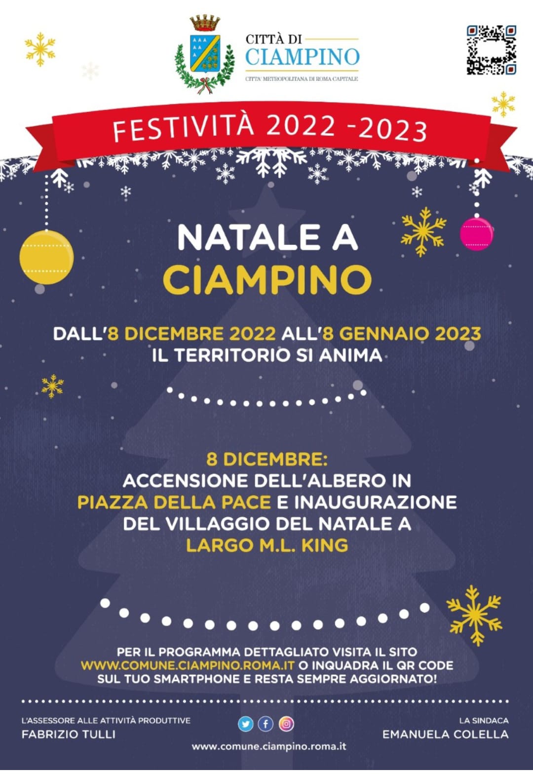 Ciampino si prepara alle festività natalizie con un calendario di eventi in Città. Si parte giovedì 8 dicembre con l’accensione dell’Albero di Natale in piazza della Pace e l’inaugurazione del Villaggio di Natale a largo M.L.King.