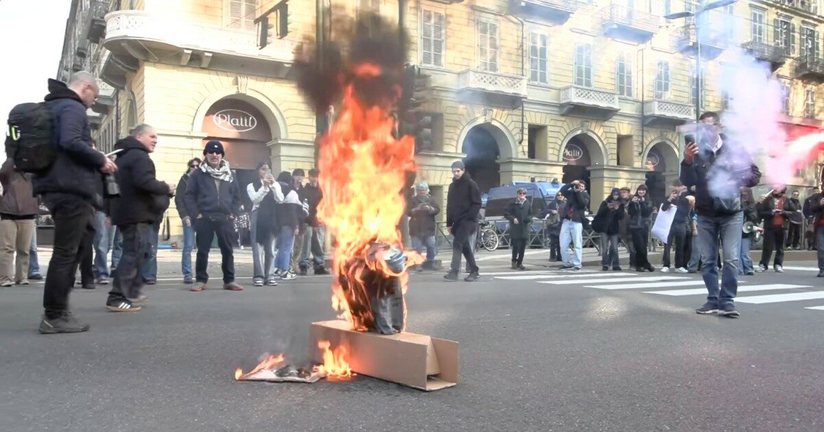 Sempre a Torino, dove gli studenti protestano anche per le posizioni del governo in politica estera, accusato di sostenere il “genocidio del popolo palestinese” da parte di Israele, è stato bruciato un fantoccio che raffigura il Ministro dell'Istruzione e del Merito, Giuseppe Valditara, all'angolo tra corso Vittorio Emanuele e corso Galileo Ferraris e hanno sfondato il cordone di Polizia in via XX Settembre, arrivando in Piazza Castello e Piazza San Carlo, davanti alla Prefettura, dove ci sono stati contatti tra studenti e Forze dell'Ordine. In seguito, gli studenti hanno raggiunto il Museo del Cinema e sono entrati nella Mole Antonelliana, fermandosi al primo piano, dove hanno esposto uno striscione con su scritto ‘Le scuole sanno da che parte stare, contro il governo e genocidio’, e bandiere palestinesi, esposte al grido di "Free Palestine".
