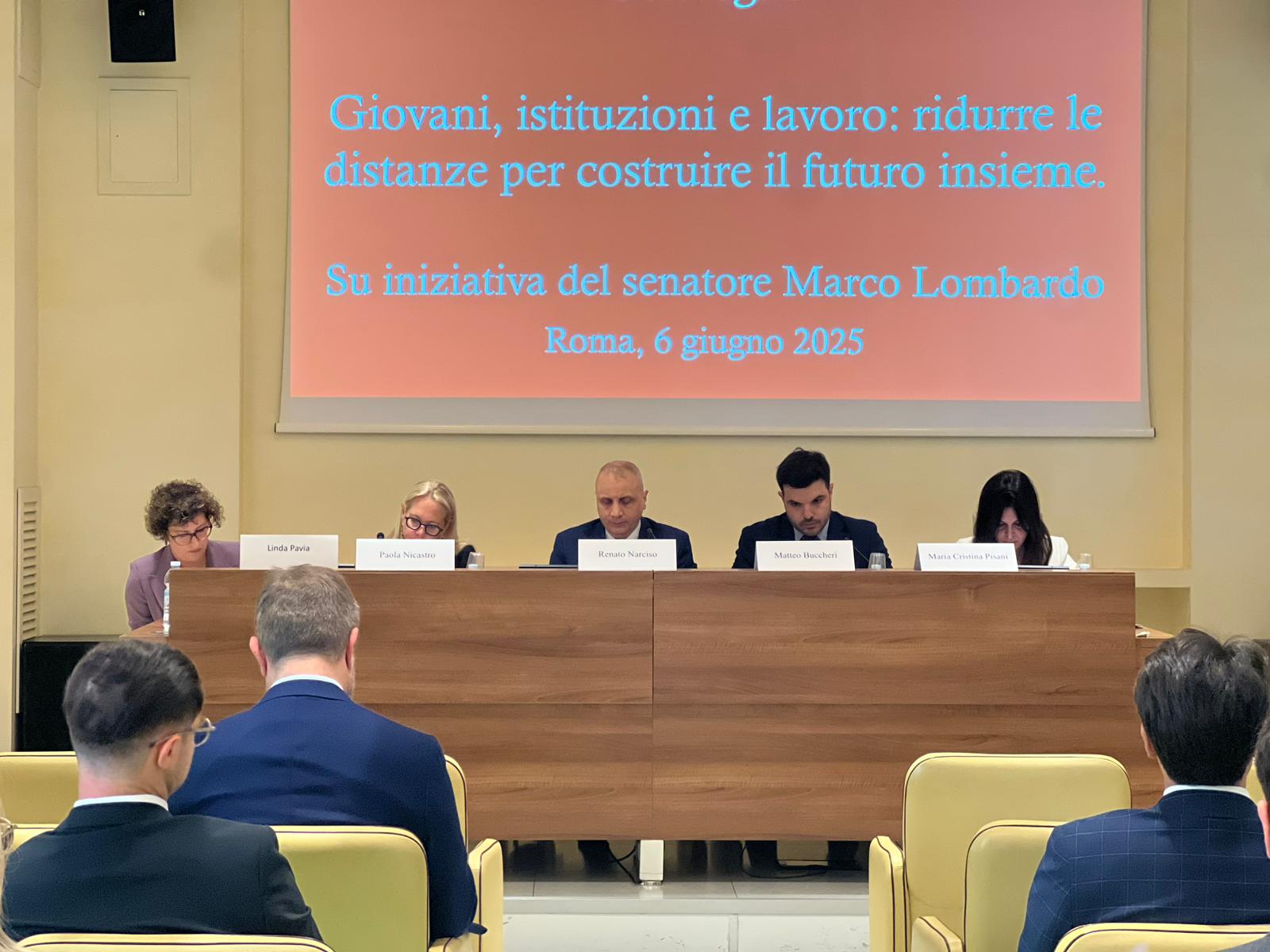 Giovani, Istituzioni e Lavoro: Ridurre le Distanze per Costruire il Futuro insieme. Questo il titolo del convegno che si è tenuto oggi, 6 giugno 2025, presso la sala ISMA del senato della repubblica. Promosso dalla Pilat Partners, l'evento si è svolto dalle 10:00 alle 12:00 diviso in 2 momenti: il primo panel dal titolo “Formazione, Orientamento e Lavoro: dialogo istituzionale su visioni e strategie”, ha visto l'intervento di Paola Nicastro, Presidente di Sviluppo Lavoro Italia, società il house del ministero del lavoro e delle politiche sociali, Maria Cristina Rosaria Pisani. Presidente del Consiglio Nazionale dei Giovani e Linda Pavia Presidente AssOrienta, associazione che rappresenta la categoria degli orientatori italiani. Nel secondo panel invece, dal titolo “Comprendere le esigenze dei giovani e offrire soluzioni mirate per ridurre le distanze” che ha visto la partecipazione di Simone Foglio, Presidente DiSCo Lazio, ente regionale per il diritto allo studio e la promozione della conoscenza; Luca Tripiedi, Imprenditore sociale e CEO Camelot, che supporta la ricerca attiva del lavoro, affianca gli enti di formazione nell’orientamento e eroga formazione professionale per categorie fragili e giovani; e Cinzia Pellegrino, membro della 4° Commissione del Senato (Politiche dell’Unione Europea). Il senatore Marco Lombardo invece, ha mandato un breve saluto scritto poiché impossibilitato a partecipare per sopraggiunti impegni. A tirare le conclusioni Riccardo Pilat, CEO e founder della Pilat Partners. Moderatori del convegno, il giornalista Renato Narciso, Matteo Buccheri - Public Affairs specialist di Pilat&Partners e Lucrezia Castellani - Legal Consultant di Pilat&Partners.