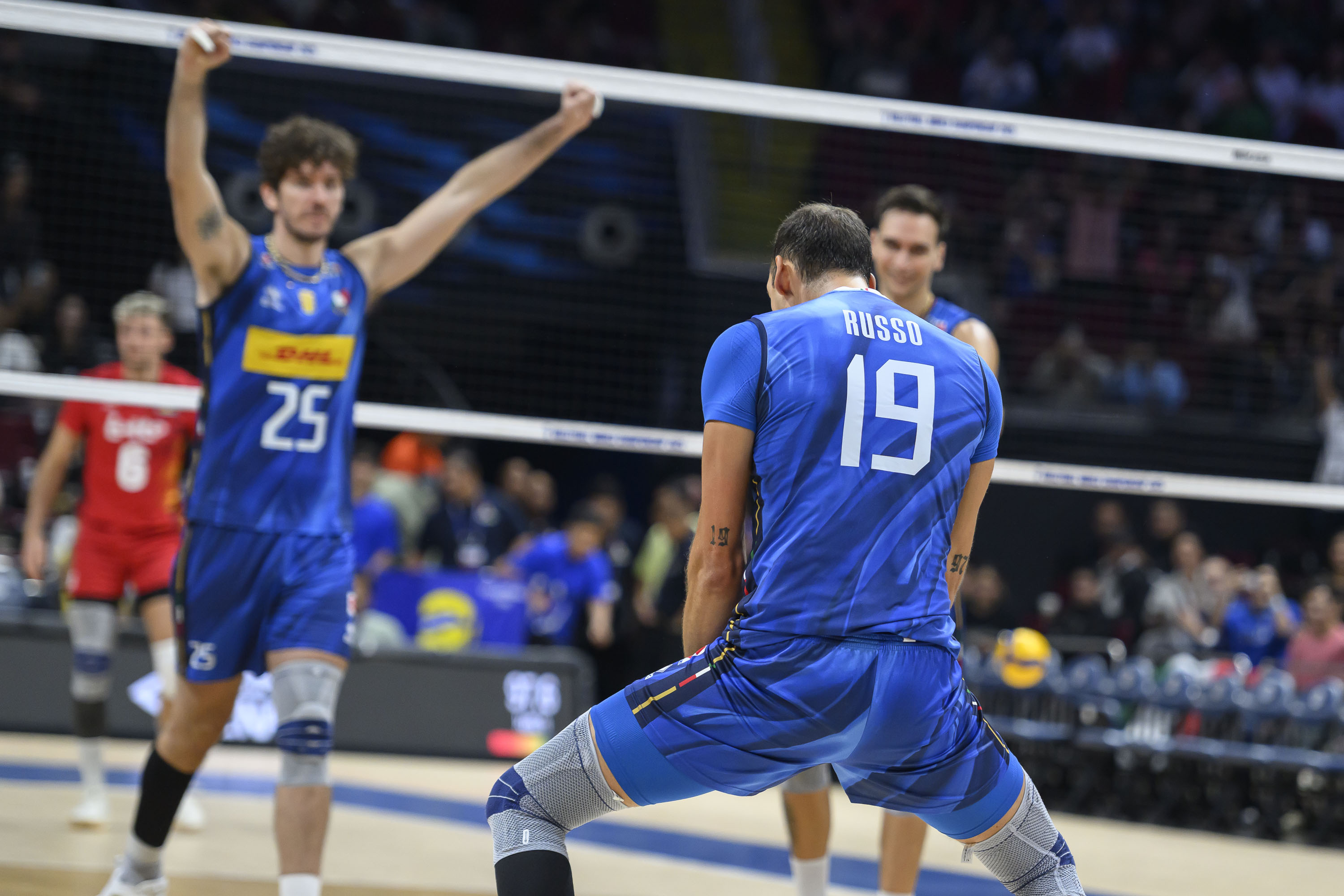 Roberto Russo dichiara: "Oggi si è vista una grande prestazione sia a livello individuale, ma soprattutto a livello di squadra come sappiamo fare. Quello che contava oggi era vincere e sono felicissimo di come abbiamo giocato e affrontato la gara, con l’aggressività giusta. Nei momenti importanti siamo rimasti concentrati su quello che dovevamo fare, è una bella vittoria. È un’Italia in crescita. Dobbiamo continuare a esprimere il nostro gioco e lo stiamo facendo, possiamo ancora migliorare. Vedremo chi sarà il nostro prossimo avversario e ci concentreremo anche su di loro, ma l’importante è che stiamo giocando bene. Spero davvero di poter continuare così. Nessuno vuole uscire da un Mondiale. È stata un’estate lunga, ma sono felice di essere rientrato nel gruppo e cercherò di dare una mano il più possibile alla squadra."