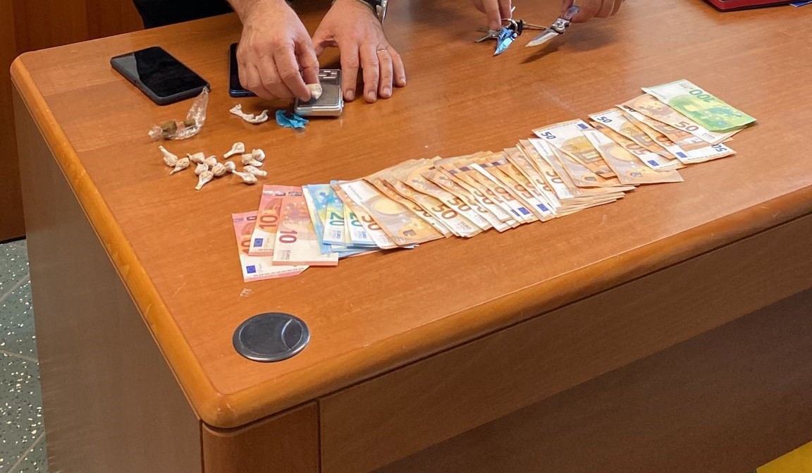 Da alcuni giorni i militari operanti si erano accorti di frequenti via vai nei pressi dell’abitazione dell’arrestato, in particolare di soggetti noti perché assuntori di stupefacente, pertanto hanno proceduto ad eseguire una perquisizione personale e domiciliare rinvenendo 2 involucri in cellophane contenenti complessivamente 8 grammi di hashish, 13 involucri di cellophane contenenti complessivamente 20 grammi di eroina, 2.000 euro in contanti, in banconote di vario taglio, un bilancino di precisione e 2 coltelli.