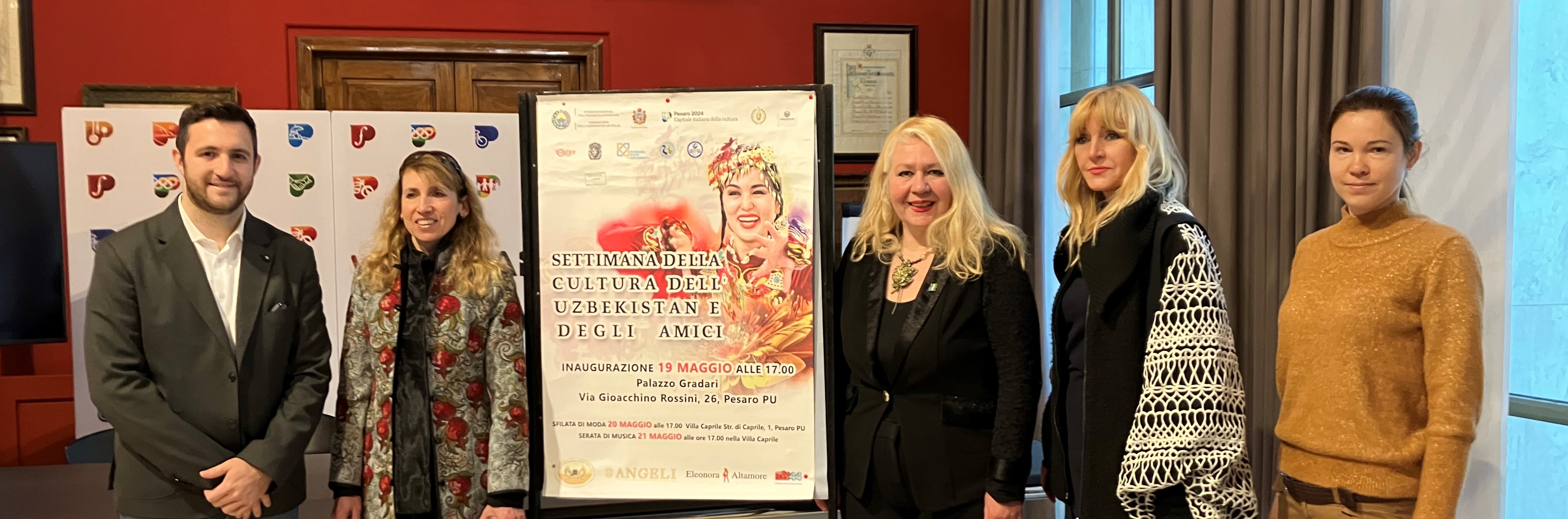 Nel weekend - tra Villa Caprile e Palazzo Gradari – numerosi eventi che offrono l’opportunità di scoprire la bellezza e la diversità delle culture uzbeka e italiana. Alla conferenza stampa erano presenti Marco Perugini presidente del Consiglio Comunale – che ha sottolineato come questo evento rappresenta un ulteriore tassello della strategia di Pesaro2024, ‘una strategia già partita nel 2023, che apre la nostra città a relazioni internazionali’ - e Aida Abdullaeva, Presidente dell'associazione internazionale Progetto Angeli - APS in rappresentanza dell'Uzbekistan.