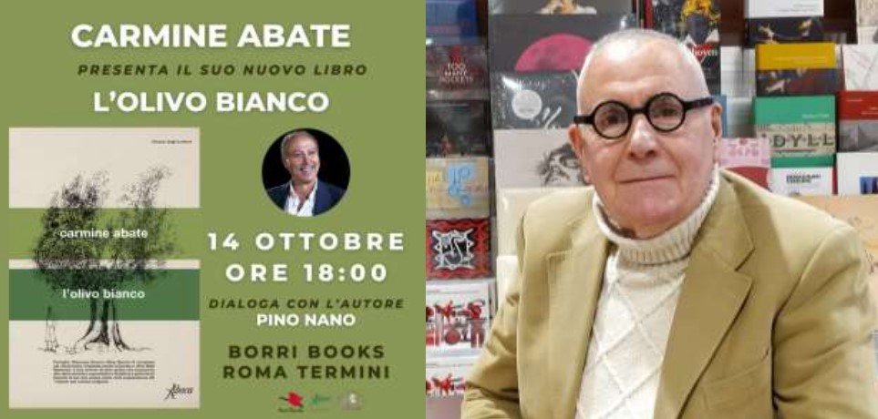 Il Prossimo 14 ottobre torna a Roma lo scrittore Carmine Abate per il lancio nazionale del suo ultimo libro “L’Olivo Bianco”, alla libreria Borri Books della stazione Roma Termini, un vero e proprio evento letterario per un saggio che racconta il Sud attraverso la magia e i profumo di un albero di ulivo che alla fine della stagione produce olive bianche, una rarità reale della campagna calabrese e che Carmine Abate ora trasforma in un simbolo del suo nuovo romanzo. A presentare il volume saranno il giornalista-scrittore Pino Nano, che già in passato aveva presentato l’ultimo saggio di Carmine Abate alla Biblioteca Casanatense di Roma, quello su Eranova, e il Presidente dell’Associazione Calabresi Capitolini, avvocato Luigi Salvati per il quale è la prima uscita pubblica dopo la presentazione alla stampa all’Università la Sapienza del nuovo “movimento”.