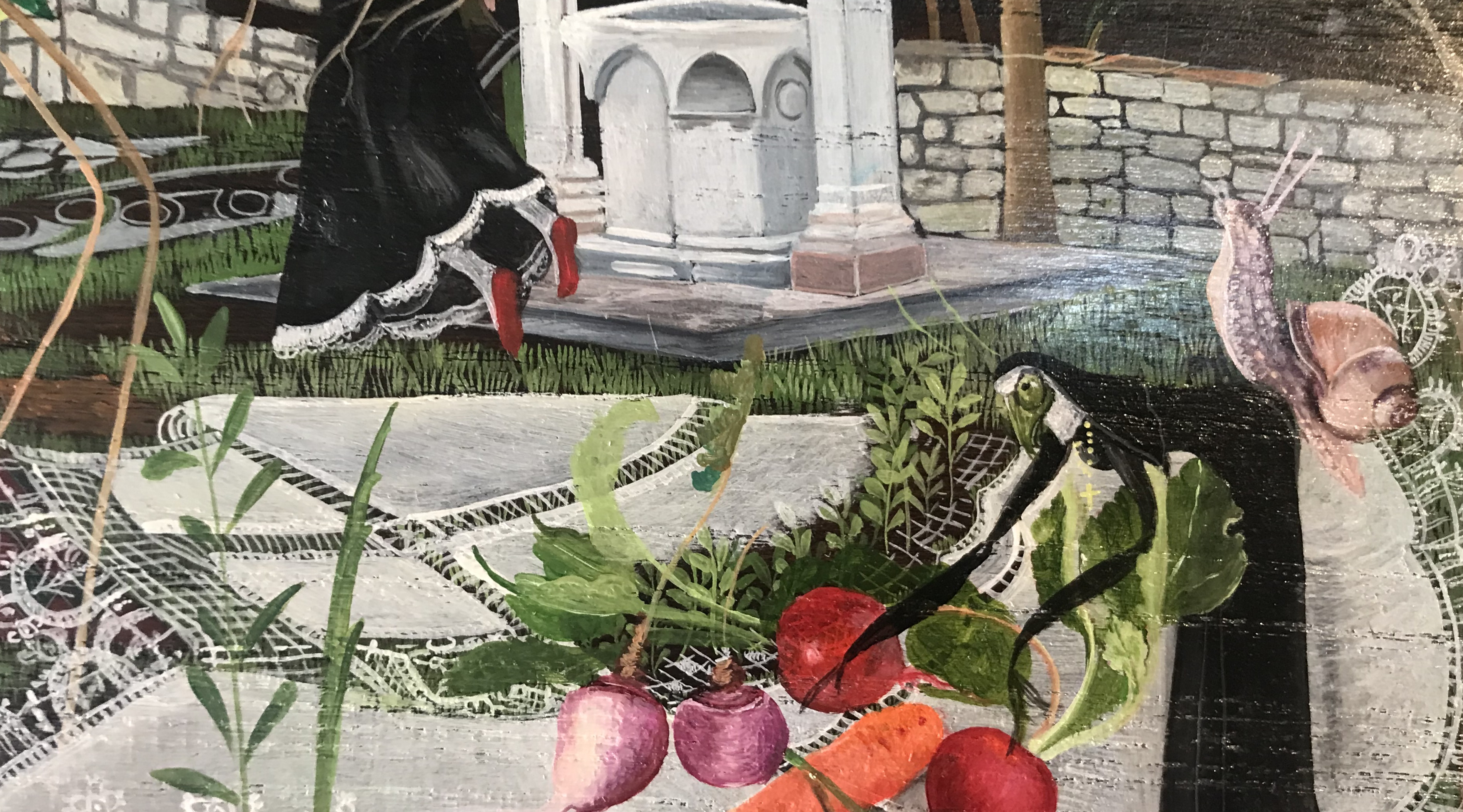 La perfezione del dettaglio crea una suggestione unica che risiede in una tecnica pittorica di altissimo livello che lei ha acquisito da sola e fin da piccola.