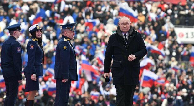 E' in corso, in questo momento, una battaglia “sui confini storici” della Federazione Russa. Così Vladimir Putin, intervenendo allo Stadio Luzhniki di Mosca, al concerto per il Giorno dei difensori della patria.