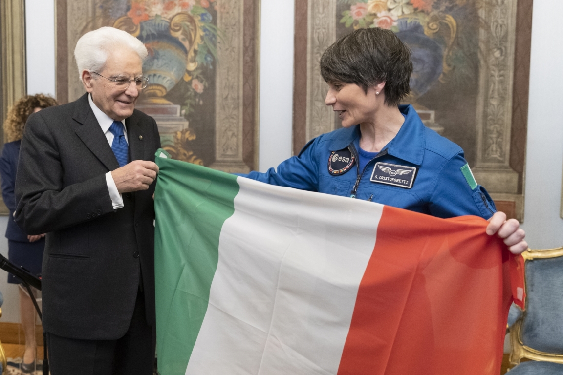 Nel corso dell'incontro Samantha Cristoforetti ha riconsegnato al Presidente Mattarella il Tricolore che ha portato a bordo della Stazione Spaziale Internazionale (ISS) nella missione della primavera del 2022".