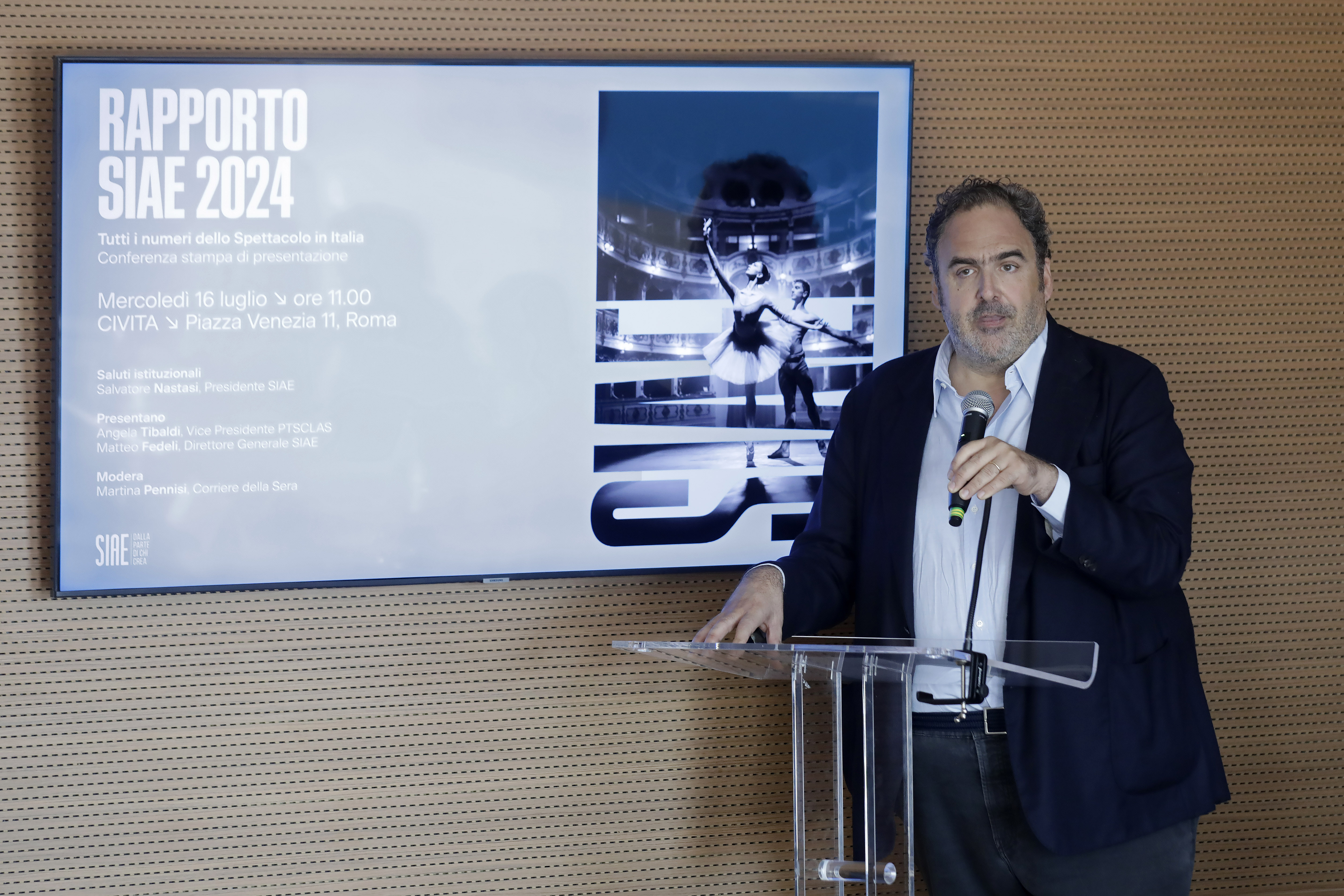 “I dati del 2024 restituiscono un’immagine complessa dello spettacolo dal vivo in Italia. Gli incrementi registrati nell’ultimo anno (+6% di spettacoli, +2% di spettatori, +2% di spesa) sono segnali positivi, ma ancora parziali. Ci troviamo davanti ad una fase di transizione, in cui il settore sta cercando nuovi equilibri, ridefinendo linguaggi, formati e abitudini. Ed è proprio nei momenti di trasformazione profonda che diventa essenziale leggere con lucidità i segnali deboli, senza forzare interpretazioni rassicuranti. In uno scenario sempre più articolato e competitivo, la tutela del diritto d’autore richiede strumenti all’altezza delle sfide. Per questo, SIAE ha avviato un percorso profondo di trasformazione, che mette al centro l’innovazione tecnologica come leva strategica, non come fine”, ha detto Matteo Fedeli, Direttore Generale SIAE.