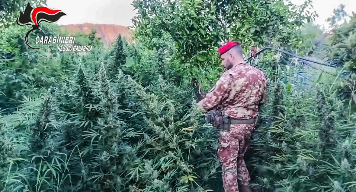 Nel territorio montano di Stilo, in località “Quote Roseto”, i militari hanno individuato una piantagione di cannabis con quasi 850 arbusti, di altezza variabile e in piena fase vegetativa. Le piante, coltivate su un terreno privo di recinzione e difficilmente accessibile, erano abilmente occultate nella fitta vegetazione, segno evidente di un’organizzazione ben strutturata e volta alla produzione su larga scala di stupefacenti. A pochi passi, all’interno di un casolare abbandonato, sono stati rinvenuti oltre un chilo di marijuana essiccata, strumenti per la lavorazione e la coltivazione della droga, e una cartuccia calibro 12 a palla asciutta. Dopo la campionatura, l’intera piantagione è stata distrutta sul posto, mentre il materiale trovato è stato sottoposto a sequestro.