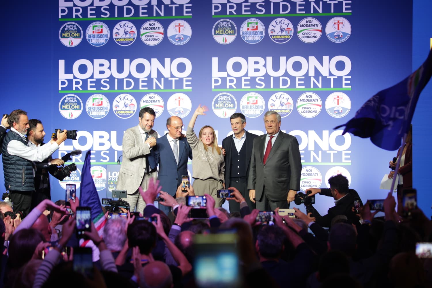 “La sfida di Lobuono e del centrodestra puntiamo a vincerla, perché non abbiamo paura di nessuno. Siamo qui, uniti come da 30 anni, come sarebbe piaciuto a un grande pugliese come Pinuccio Tatarella, un uomo del popolo innamorato della sua terra. Quella che vedete qui non è un’alleanza innaturale tenuta insieme dalla colla scadente dell’interesse, non è un sistema consolidato che prova a vendersi come nuovo solo per perpetuarsi. Noi stiamo insieme per scelta e siamo orgogliosi di batterci dalla stessa parte. Alla sinistra che credeva di trovarci fragili, vogliamo dire che ogni volta che siamo chiamati a difendere le idee nelle quali crediamo e a fare la nostra parte, siamo abituati a farci trovare pronti.
