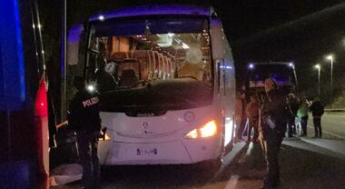 Il personale che ha fatto da scorta al pullman ha notato alcune persone a volto coperto mentre si stavano allontanando velocemente usando le auto parcheggiate sotto il cavalcavia: una di queste è stata subito bloccata dagli agenti della Polizia di Stato, che hanno accompagnato gli occupanti in Questura, per altri accertamenti.