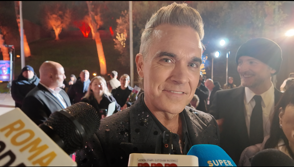 Il momento clou della serata è stato senza dubbio il mini-live dedicato ai fan presenti all’Auditorium Parco della Musica. Con 600 spettatori selezionati, Williams ha eseguito alcuni dei suoi brani più amati, trasformando la presentazione in un vero e proprio spettacolo. Tra le canzoni proposte, non sono mancati i grandi classici, in una serata che ha unito musica, emozioni e sorrisi.