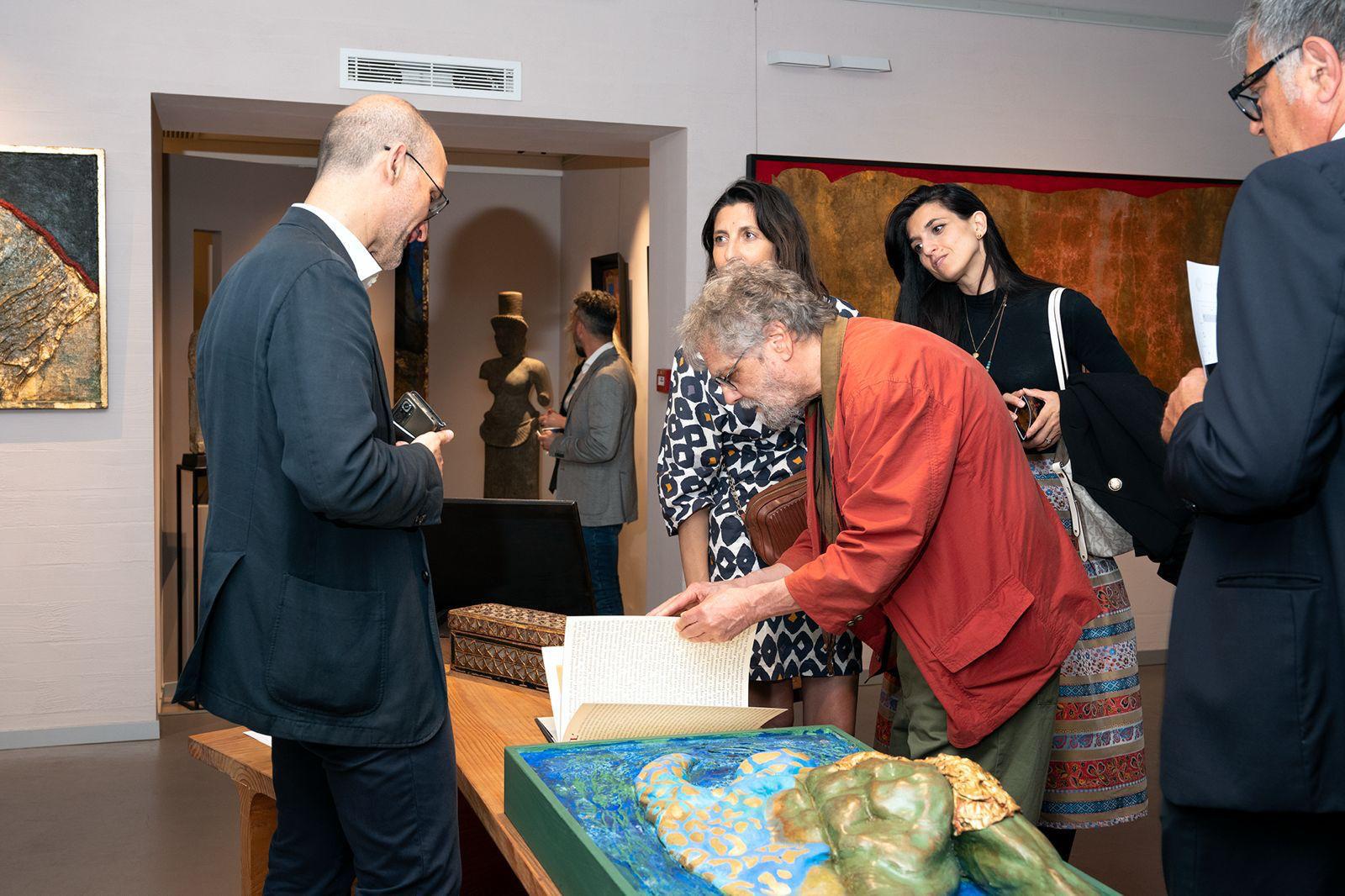 L’artista palermitano, insieme al curatore Diego Ferrante e al gallerista David Aquilani, ha presentato una selezione di opere che ha suscitato vivo interesse tra i presenti, dando forma a una mostra di grande intensità visiva.