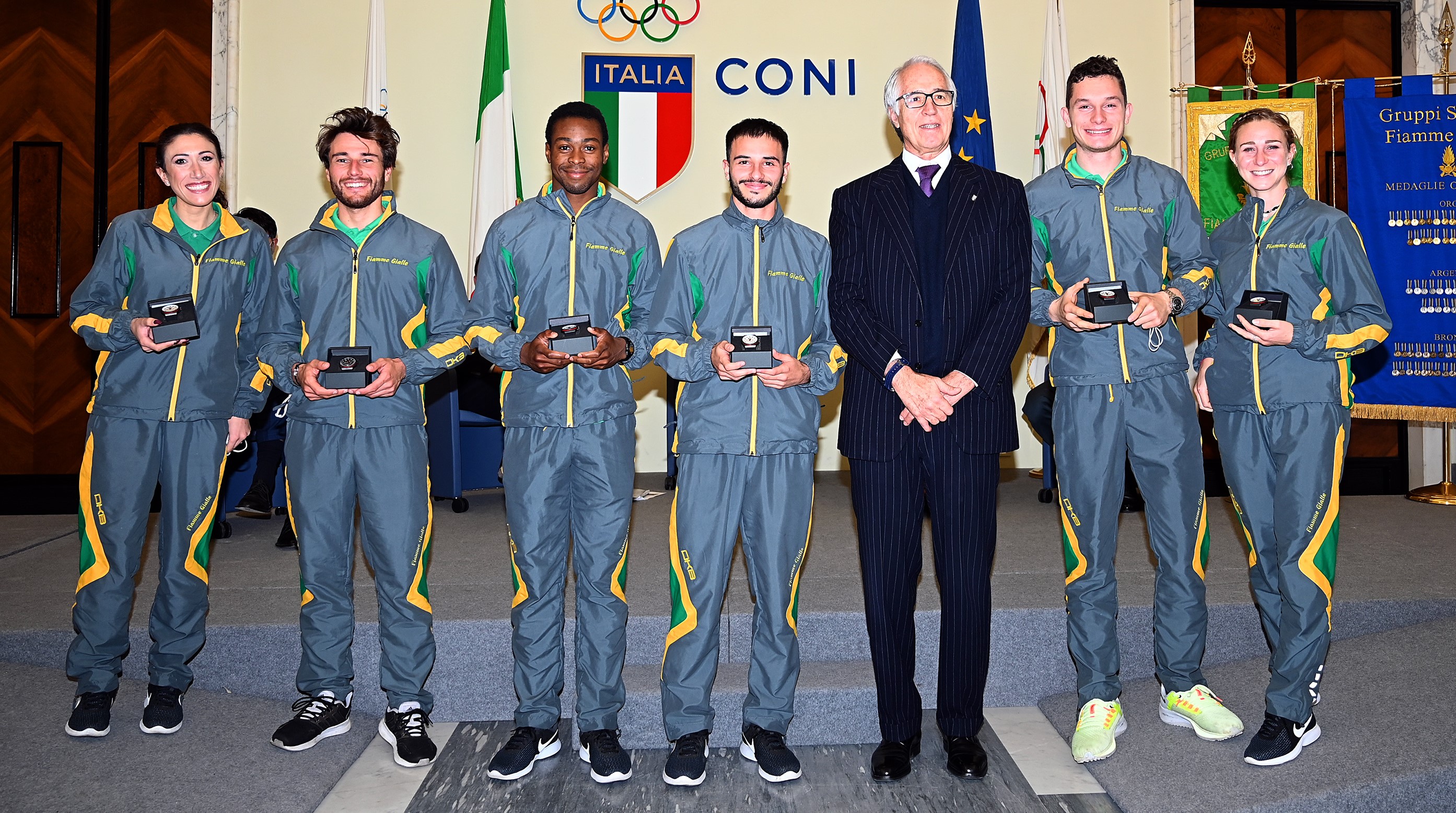 Alla presenza del Presidente del Coni Giovanni Malagò, del Vice Presidente Vicario del CIP Roberto Valori, del Presidente di Sport e Salute Vito Cozzoli, dei Membri Onorari del Comitato Olimpico Internazionale Franco Carraro e Manuela Di Centa, di Alessandro Onorato, Assessore allo Sport di Roma Capitale e Roberto Tavani, delegato allo sport del Presidente Regione Lazio nonchè di numerosi Membri di Giunta, Presidenti federali ed Autorità sportive e militari, le Fiamme Gialle hanno premiato i migliori atleti delle Sezioni Giovanili che, nella stagione appena conclusa, hanno conseguito risultati d’eccellenza in campo nazionale e internazionale.