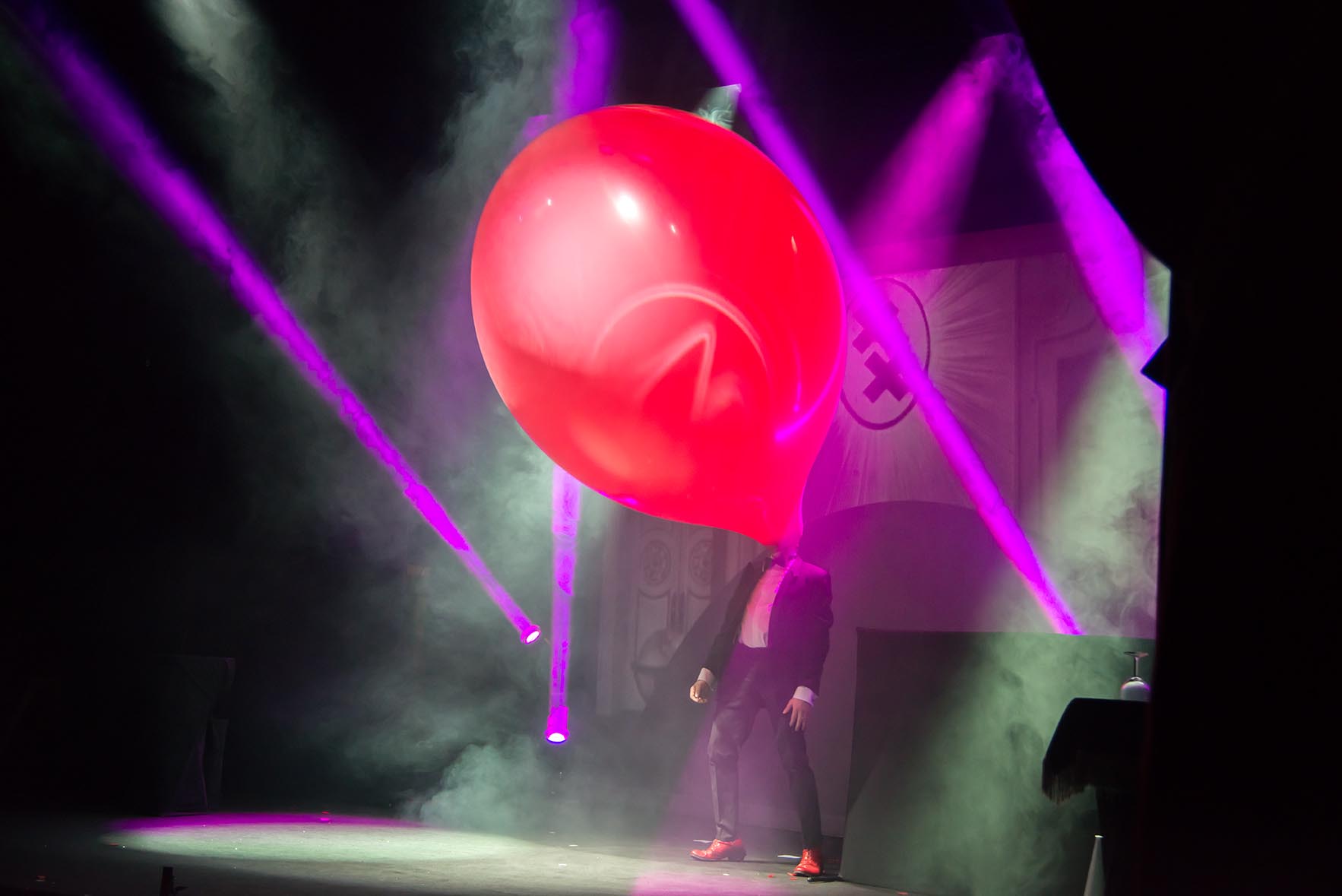100 minuti di Magia, fantasticherie e acrobazie in cui gli eccentrici protagonisti sembrano moltiplicarsi sulla scena come i riflessi di una lanterna magica. Palle volanti, palloncini giganti, donne tagliate, levitazioni, miracoli, metamorfosi, sparizioni e musica dal vivo per dare libero sfogo al sogno e all’immaginazione attraverso la comicità e la poesia dei Disguido.