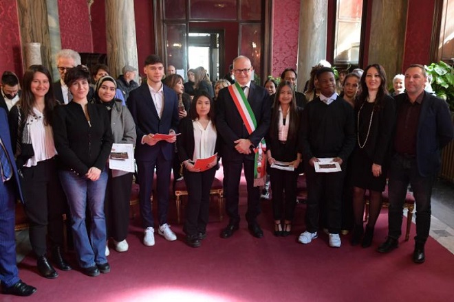 “Oggi è una bellissima giornata. Cinque ragazzi nati in Italia da genitori stranieri, a 18 anni acquisiscono la cittadinanza. Lo fanno anche con un impegno del Comune di rendere effettivo questo diritto e, al tempo stesso, con il nostro impegno di sollecitare un cambio della Legge.