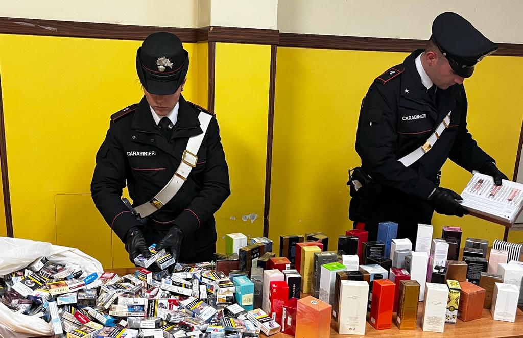 Trovati e sequestrati 192 confezioni di profumi e cosmetici per un valore di oltre 12.000 euro, 517 pacchetti di sigarette, 8 sigarette elettroniche, 2 torce a batteria e diversi indumenti.