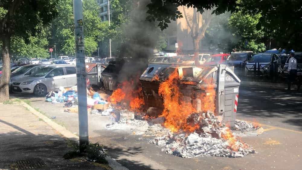 Due cassonetti dell'Ama sono stati dati alle fiamme ieri sera in Via Veroli, all'incrocio con Via Arcinazzo, a Roma, nel quartiere di Centocelle. I cassonetti sono andati a fuoco nel giro di pochi secondi.