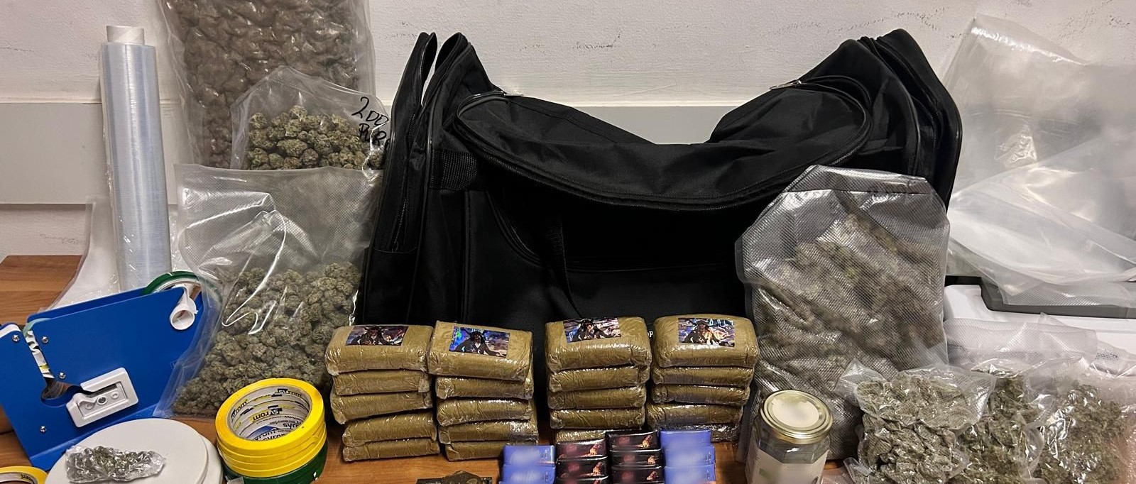 All’esito di un’attività di osservazione e controllo, i poliziotti hanno deciso di intervenire dando il via alla perquisizione dell’abitazione dove, grazie all’ausilio dell’unità Cinofila Antidroga, sono stati rinvenuti, in un borsone per la palestra e in un mobile della cucina, 4,1 kg tra hashish e marijuana e 480 grammi di cocaina, oltre a materiale di vario genere utilizzato per la pesatura e il confezionamento di sostanza stupefacente.