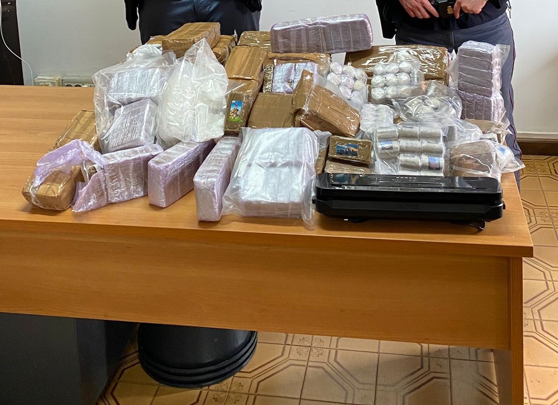 La successiva perquisizione presso un deposito nella disponibilità di uno dei due ha consentito il rinvenimento di altri 33 kg di hashish e di oltre 1 etto di cocaina.
