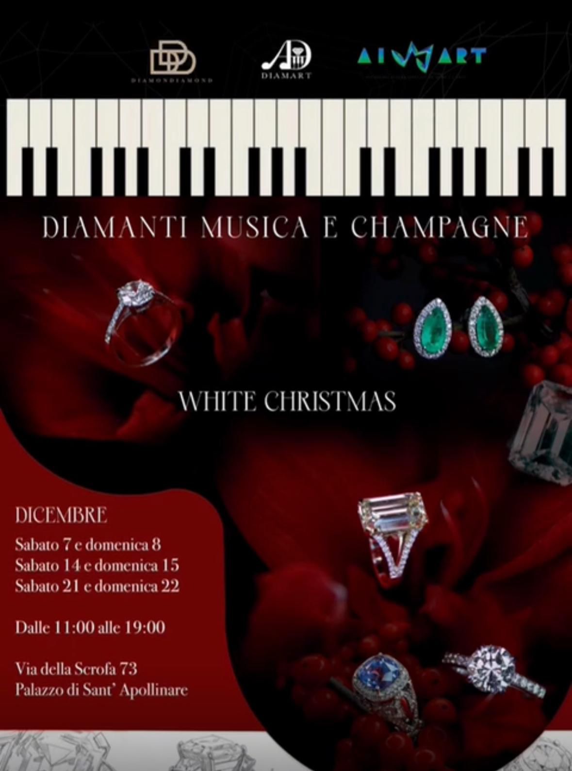 Roma si prepara a vivere un dicembre scintillante grazie a “Diamanti, musica e champagne – White Christmas”, una serie di eventi esclusivi che animeranno i weekend del mese nella storica cornice del Palazzo di Sant’Apollinare, in Via della Scrofa 73.