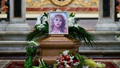 Il feretro è stato accolto nella Chiesa degli Artisti di Piazza del Popolo sulle note di "Wish You Were Here". Il figlio Paolo Ciavarro: "Oggi l'abbiamo restituita al pubblico".