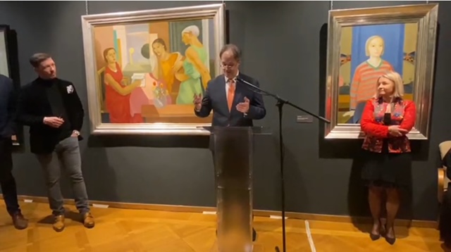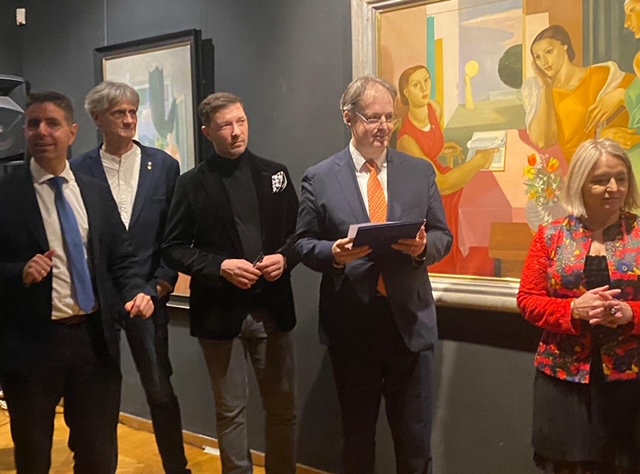 Ad aprire gli interventi è stata la Krisztina Lantos la Direttrice Accademia d'Ungheria in Rom, a seguire Gábor Csaba, il Vice Sottosegretario di Stato Ministero della Cultura e dell'Innovazione del governo ungherese e lo stesso collezionista Máté Dobos che ha consegnato un quadro alla Direttrice Krisztina Lantos.