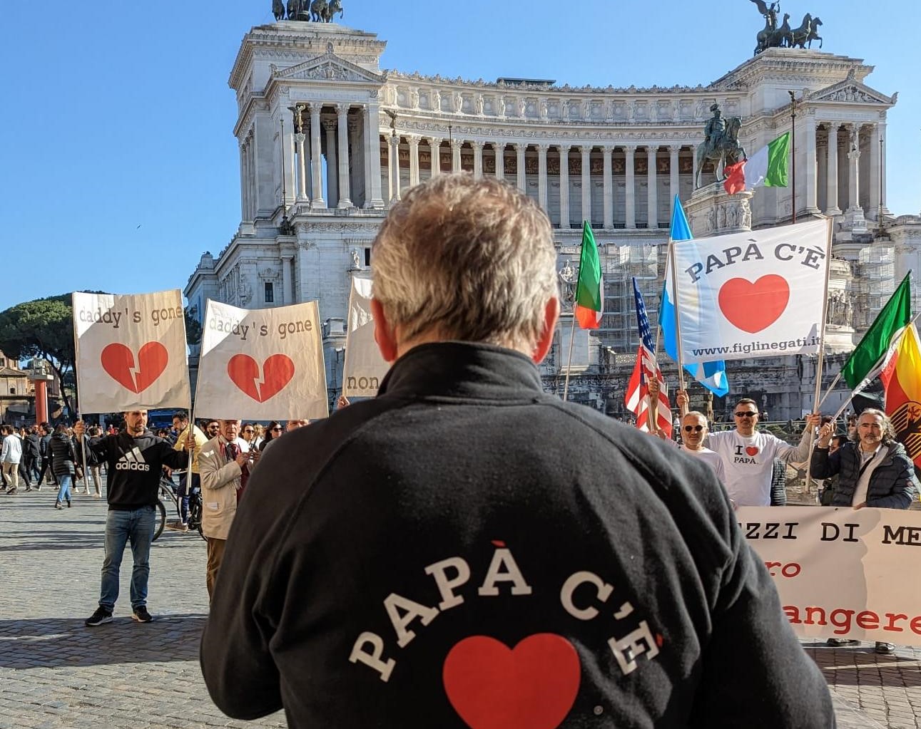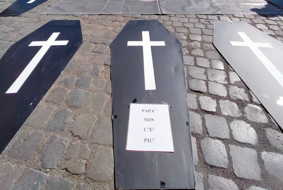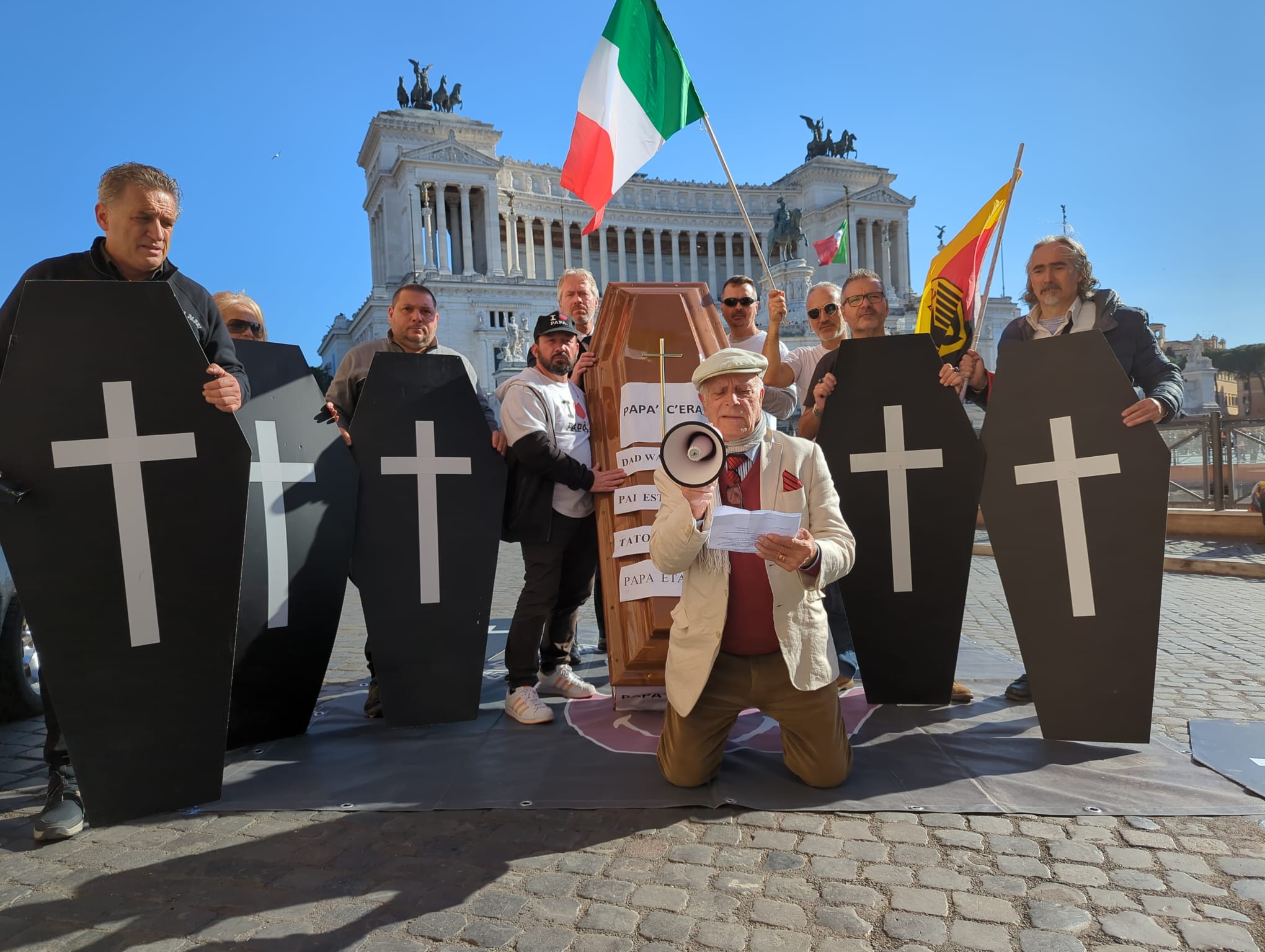Con una vera bara in spalla, cartelli con i cuori infranti e striscioni in tutte le lingue con scritto: "Papà c'era" tanti papà hanno marciato per il centro celebrando un finto funerale, chiedendo "rispetto" ma soprattutto "più giustizia" per le tante vittime che si sono tolte la vita in tutti questi anni.